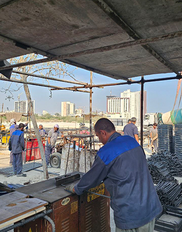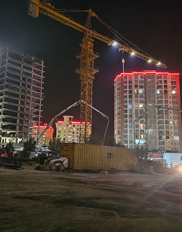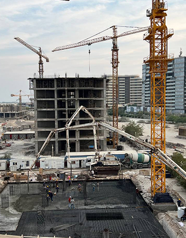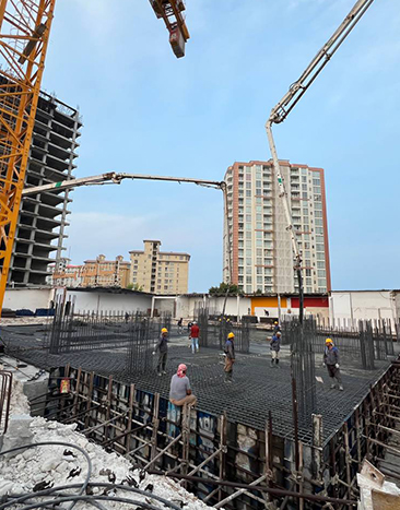 این شرکت پس از عقد قرارداد نسبت به تجهیز کامل کارگاه اقدام نموده و تمام مراحل اجرای اسکلت بتنی را برعهده دارد که شامل تامین بتن و ابزار وتجهیزات کامل اجرای فونداسیون، ستون و دیوارهای برشی و اسکلت با سقف دال بتنی برای یک برج مسکونی 17طبقه میباشد.در این پروژه از سیستم کوپلینگ برای اتصال میلگردها استفاده میشود و سیستم سازه ای سقف ،دال دوطرفه با سیستم قاب خمشی ویژه طراحی شده است و هم اکنون در حال اجرا میباشد.